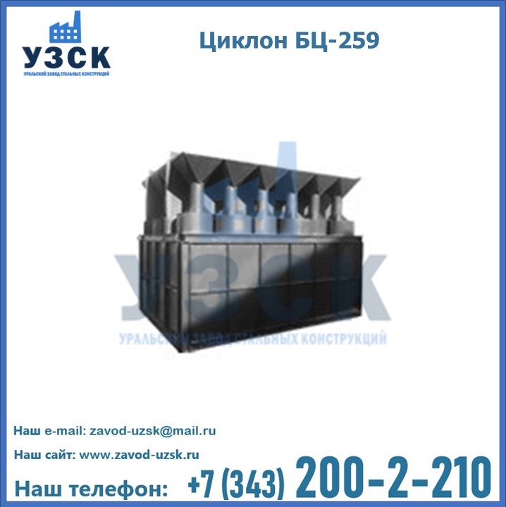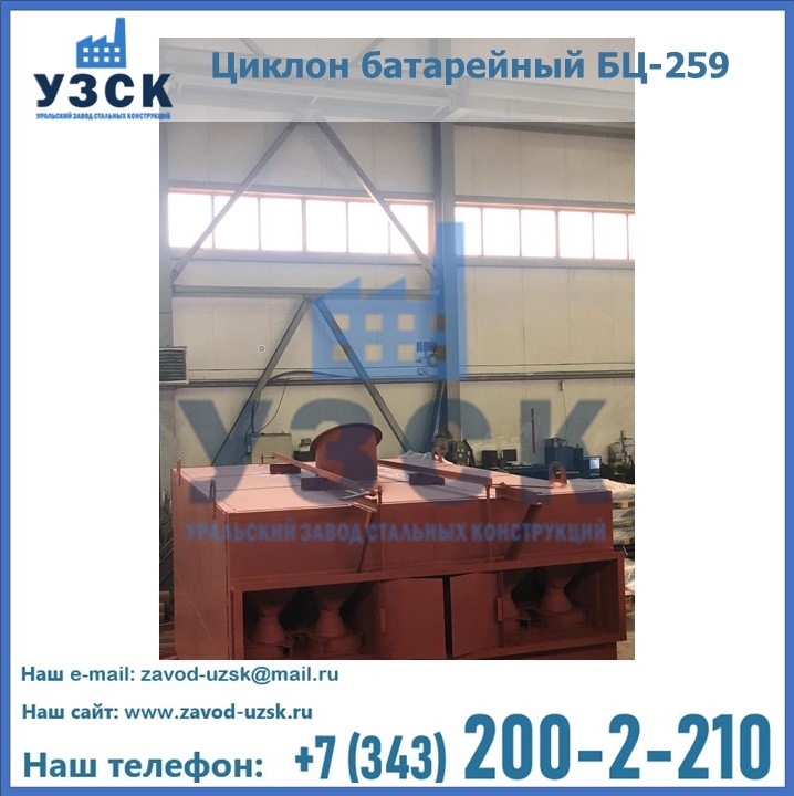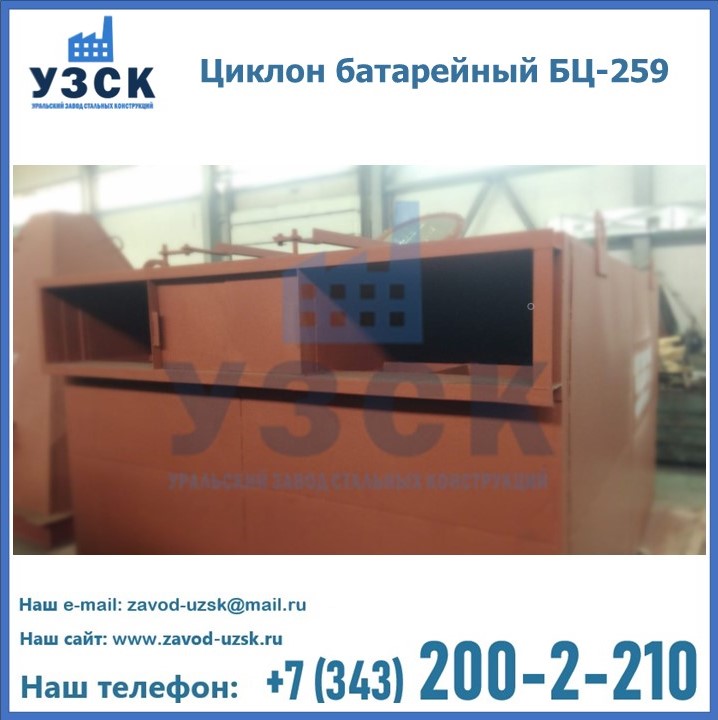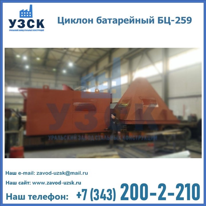 Приобрести качественное оборудование, в том числе, циклоны БЦ-259, можно в компании УЗСК в Кургане. Мы предлагаем долговечную и надежную продукцию по приемлемой цене. Заказать и купить циклоны или другие изделия высокого качества можно через сайт Уральского Завода Стальных Конструкций, или позвонив по указанному в разделе «Контакты» телефону.
