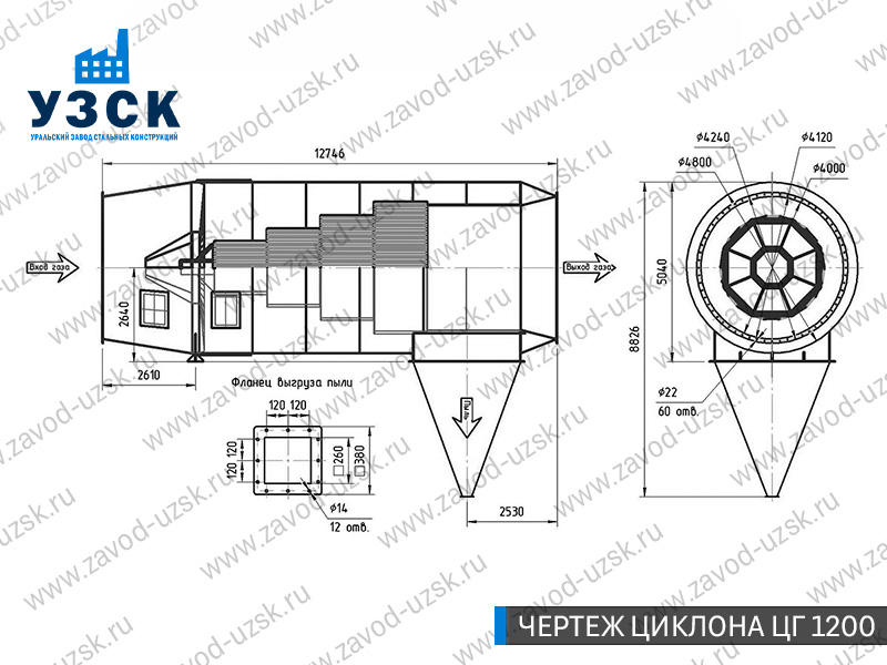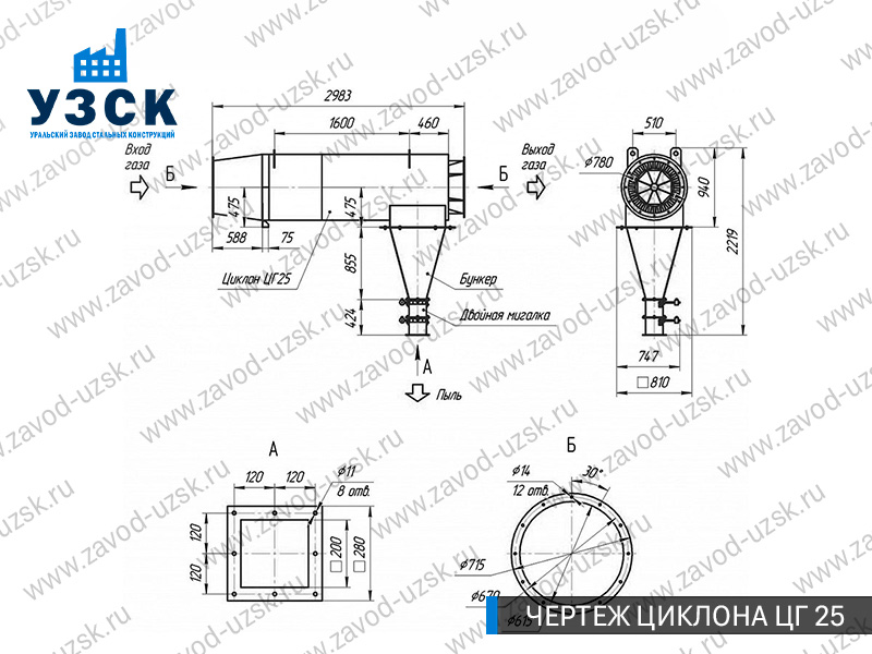 Монтаж циклона-искрогасителя ЦГ должен осуществляться непосредственно к горизонтальному вентиляционному каналу на входе в систему фильтрации и аспирации. Заказать изготовление по индивидуальному техзаданию или купить готовый циклон-искрогаситель ЦГ на заводе УЗСК в Кургане можно, оставив заявку прямо на сайте или позвонив по указанному телефону, уточнив все детали касательно продажи оборудования.