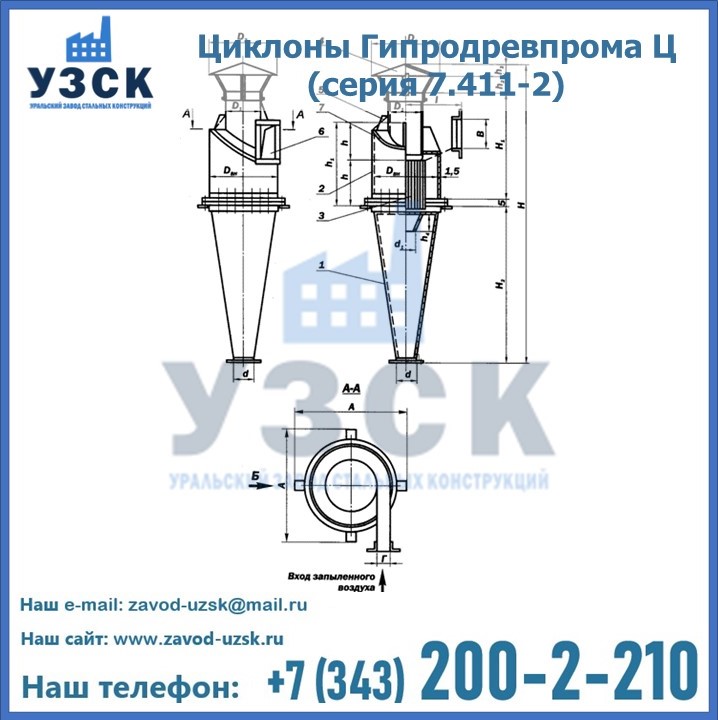 Циклоны Гипродревпрома Ц (серия 7.411-2) высокого качества можно купить в компании «УЗСК» в Кургане. Наши специалисты предоставят всю необходимую информацию информацию и помогут с выбором модели циклона. Подробные технические характеристики, конструкцию, параметры, ассортимент и стоимость продукции можно также найти на сайте УЗСК.