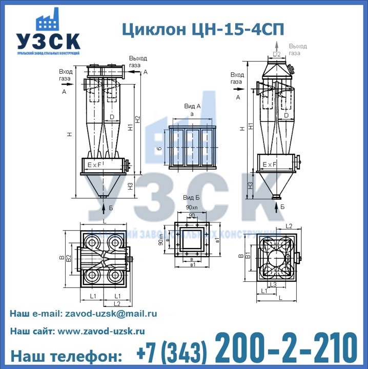 Завод «УЗСК» в Кургане предлагает большой выбор циклонов ЦН-15-600×4СП и прочих устройств, полностью укомплектованных и готовых к эксплуатации. Мы гарантируем соответствие оборудования всем требованиям ГОСТ и ТУ, износостойкость и высокую производительность предлагаемого оборудования. Уральский Завод Стальных Конструкций изготавливает и продает надежное, эффективное и производительное оборудование, имеющее длительную гарантию и большой эксплуатационный ресурс. Если требуется изготовить циклон нестандартных размеров, то такой вариант выполнения заказа тоже предусмотрен, так как предприятие имеет собственные производственные площади и надежных поставщиков. На все поставляемое или производимое оборудование имеются чертежи и прочая техническая документация. Заказать и купить циклоны или прочее оборудование высокого качества и по доступной цене можно через наш сайт или по указанному в разделе «Контакты» телефону.