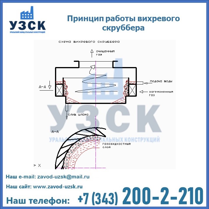 Вихревой скруббер типа ВС – разновидность оборудования, предназначенного для организации и упорядочивания теплообменных процессов. Представляет собой центробежно-барботажный аппарат, применяемый в качестве пылеуловителя (для «мокрого» способа очистки газовоздушных потоков от пыли), абсорбера, теплообменника контактного типа. В область применения данного устройства входят такие сферы промышленности в Кургане, как химпром, пищепром, металлургия.
