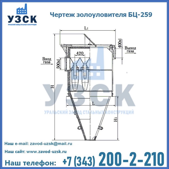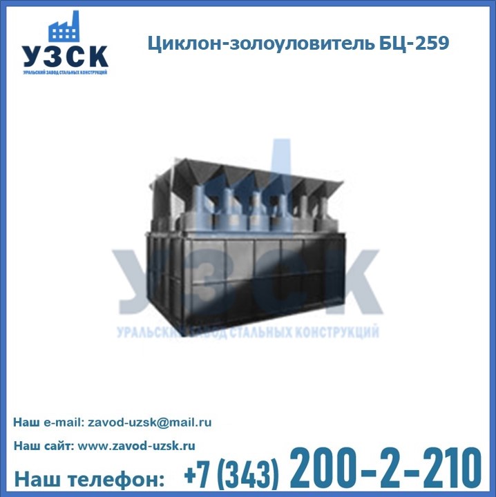 Если вы планируете купить то или иное оборудование, например, циклоны-золоуловители БЦ-259, то рекомендуем заказать данный товар на сайте УЗСК. Мы производим и реализуем продукцию высокого качества по приемлемой цене. Эксперты Уральского Завода Стальных Конструкций в Кургане проконсультируют вас по всем вопросам, помогут сделать выбор и оформить заказ без лишних временных затрат. Мы гарантируем соответствие нашей продукции всем требованиям ГОСТ и ТУ, а также износостойкость и высокую производительность предлагаемого оборудования. Если требуется изготовить циклон нестандартных размеров, то такой вариант выполнения заказа тоже предусмотрен, так как предприятие имеет собственные производственные площади и надежных поставщиков. На все поставляемое или производимое оборудование имеются чертежи и прочая техническая документация. Заказать и купить циклоны или прочее оборудование высокого качества и по доступной цене можно через наш сайт или по указанному в разделе «Контакты» телефону.