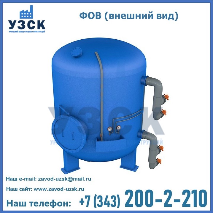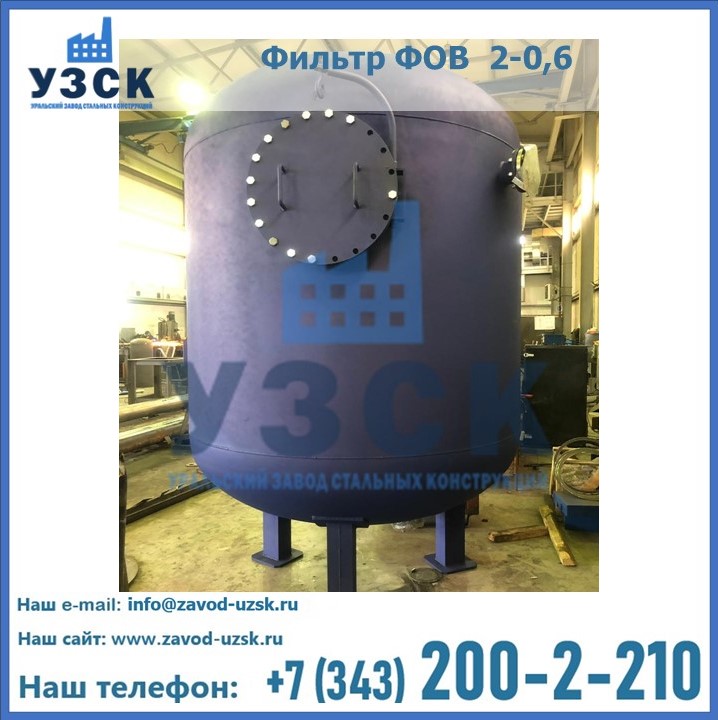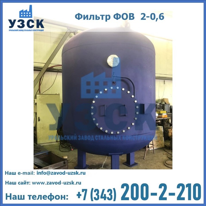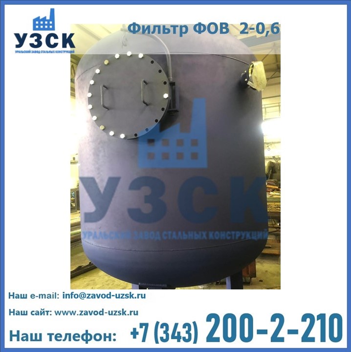 Удаление взвешенных веществ различного уровня дисперсности из рабочих жидкостей эффективно проводит фильтр осветлительный типа ФОВ (скорый или механический) — вертикально-цилиндрической формы установка, разработанная для систем водоподготовки различного класса. Оборудование представляет собой однокамерный агрегат для очистки воды рекомендованный для применения на станциях очистки стоков, в коммунальных котельных, на ТЭЦ, в промышленных отопительных системах и пр. Заказать производство ФОВ фильтров предлагает наш Уральский завод стальных конструкций в Кургане. У нас можно купить фильтрационное оборудование различного класса и типа, в том числе фильтры ФОВ из нержавеющей стали.
