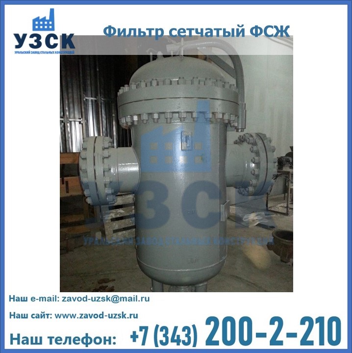Очистку перекачиваемых жидкостей на предприятиях нефтяной, пищевой, горнорудной, фармацевтической и других отраслей промышленности эффективно выполнять с помощью жидкостного сетчатого фильтра — емкостное оборудование цилиндрической формы со съемной крышкой и элементом фильтрации внутри. Оснащенные им всасывающие линии насосных станций и установок защищены от проникновения твердых частиц в функциональные узлы гидравлической системы. Оборудование служит для перекачивания токсичных, агрессивных и иных эмульсий, суспензий, жидкостей. Купить фильтр сетчатый жидкостный ФСЖ в Кургане с гарантией производителя предлагает «Уральский завод стальных конструкций». Мы выполняем проектирование и изготовление ФСЖ по индивидуальным требованиям (климатическая зона, транспортируемая жидкость).