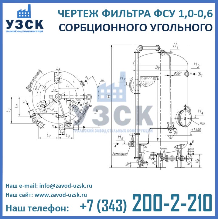 Наш завод (Уральский завод стальных конструкций) является производителем угольных фильтров, сам осуществляет изготовление и реализацию выпускаемой продукции. Приобретая фильтры ФСУ-1.0-0.6 в Кургане от производителя, Вы приобретаете оборудование без наценок всевозможных посредников, а также значительно экономите свое время. Фильтры ФСУ1.0-0.6 завода УЗСК – это гарантия качества, кратчайшие сроки изготовления и цена, которая Вам понравится.