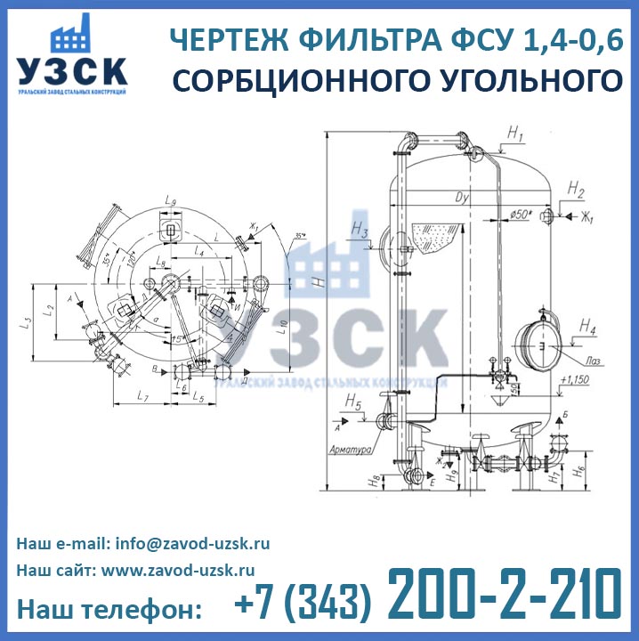 Если вы ищете фильтры ФСУ-1,4-0,6 в Кургане от изготовителя, то Вы на правильном пути! Уральский завод стальных конструкций – непосредственный производитель сорбционных фильтров ФСУ, предлагающий самые выгодные цены на ФСУ-1.4-0.6 в Кургане. По окончании процесса производства угольные фильтры проходят гидравлические испытания пробным давлением 0,9 МПа на аттестованном гидростенде, находящимся в собственности завода УЗСК. Мы гарантируем высокое качество выпускаемой продукции, и в этом уже убедились ведущие предприятия промышленного сектора России и стран ЕАЭС (см. раздел «Наши клиенты»).