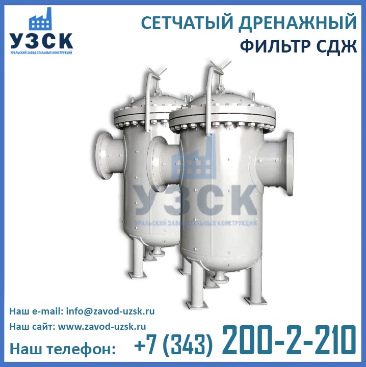 Уральский завод стальных конструкций является ведущим производителем дренажных фильтров в Кургане и по всей России. Также завод УЗСК осуществляет поставки сетчатых фильтров СДЖ в страны ЕАЭС: Казахстан, Армению, Белоруссию и Киргизию. Высокое качество продукции подтверждено соответствующими документами (сертификаты/декларации), осуществляются гидравлические испытания готовых изделий на аттестованном гидростенде завода.